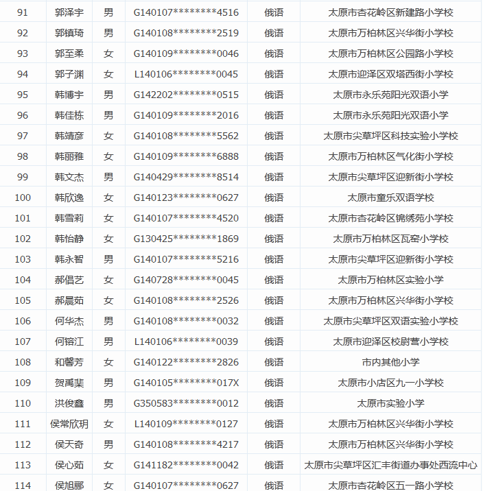 2015太原外国语小升初俄语志愿报名名单公示(5)