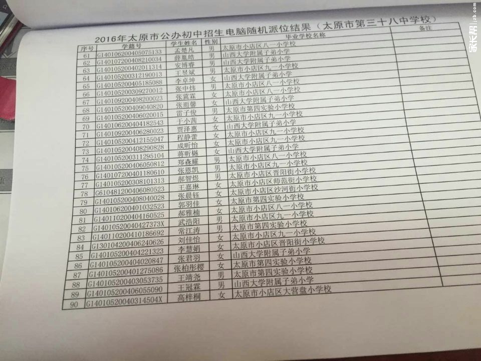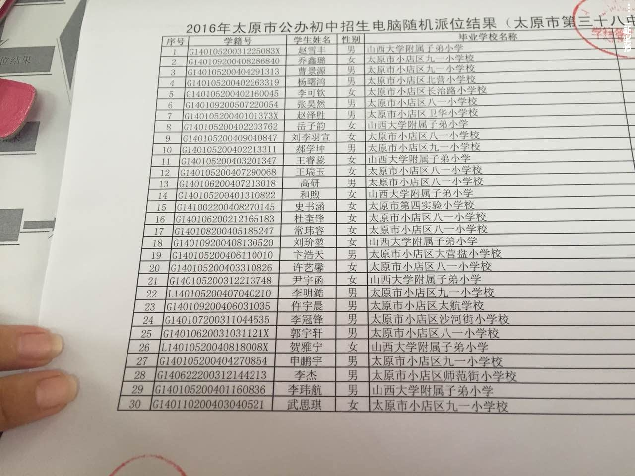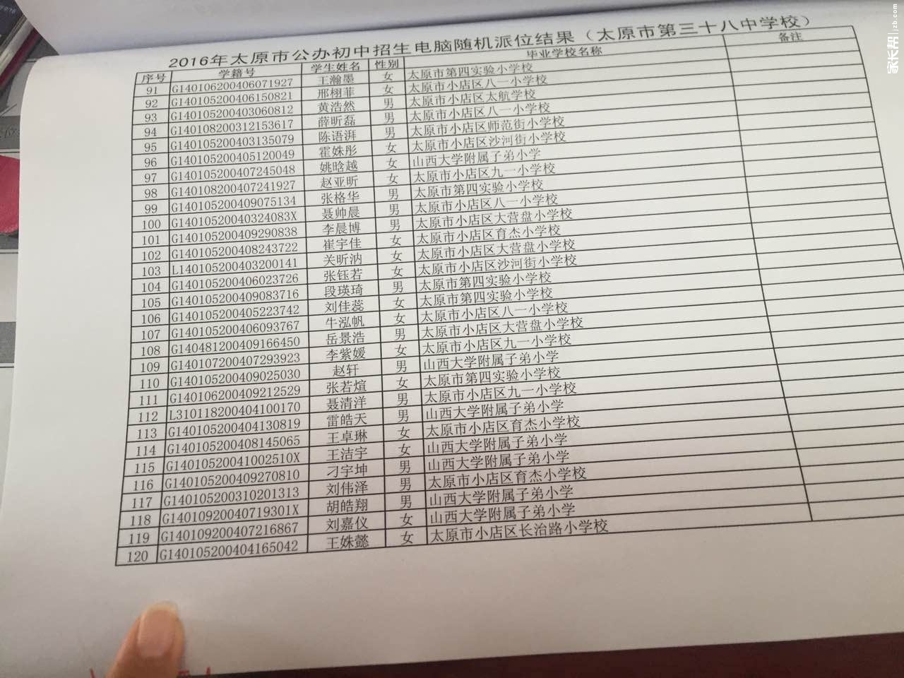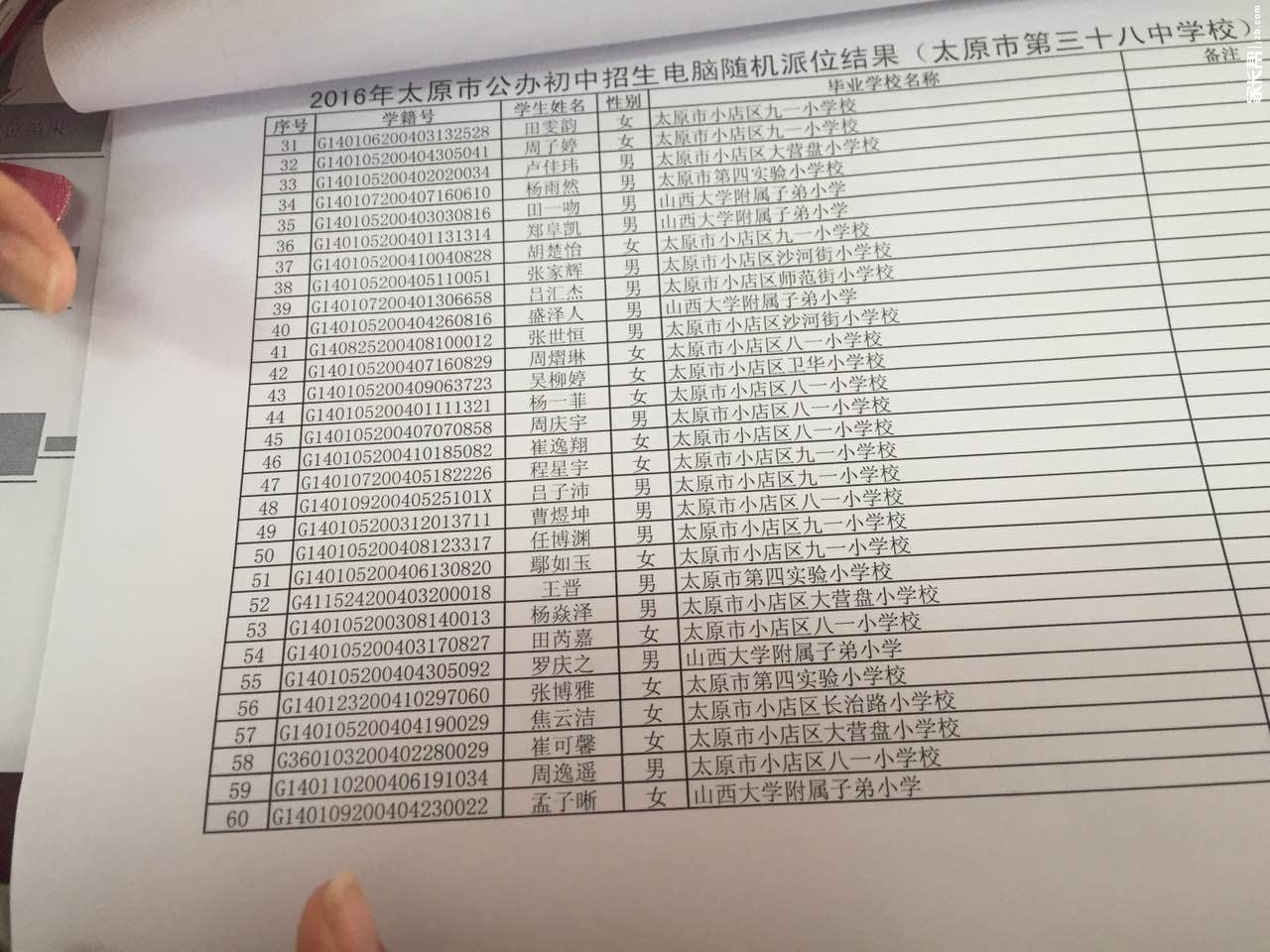 2016太原38中小升初摇号录取名单出来了,下面分享详细信息给大家,恭喜上榜同学。