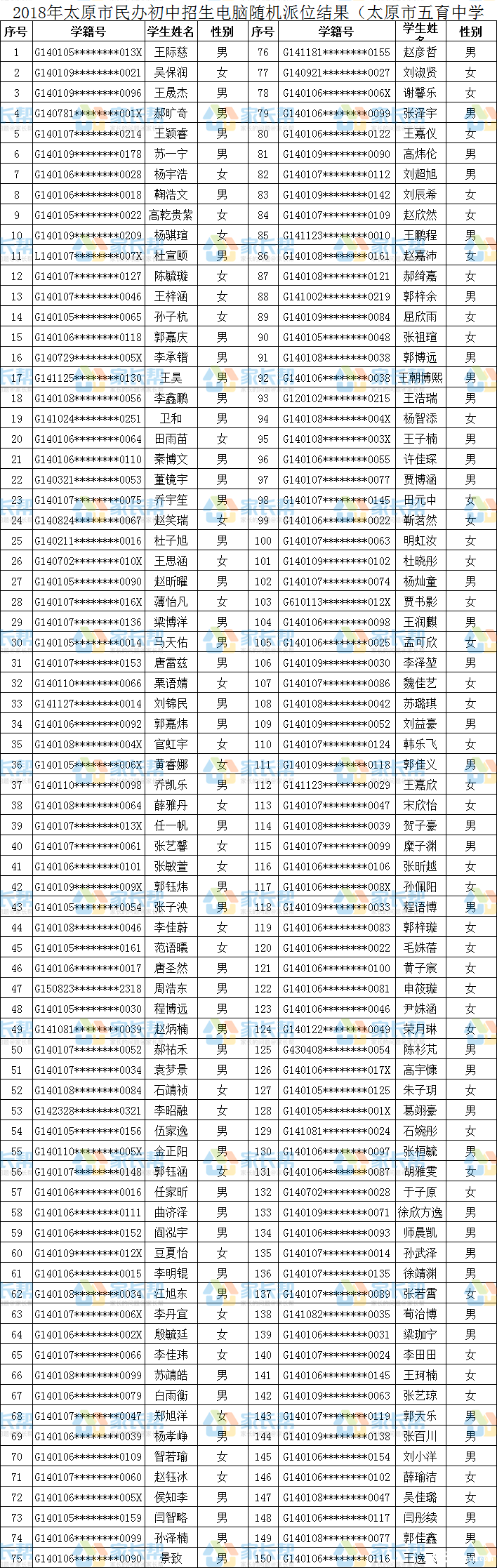2018年太原市电脑随机派位结果:五育中学