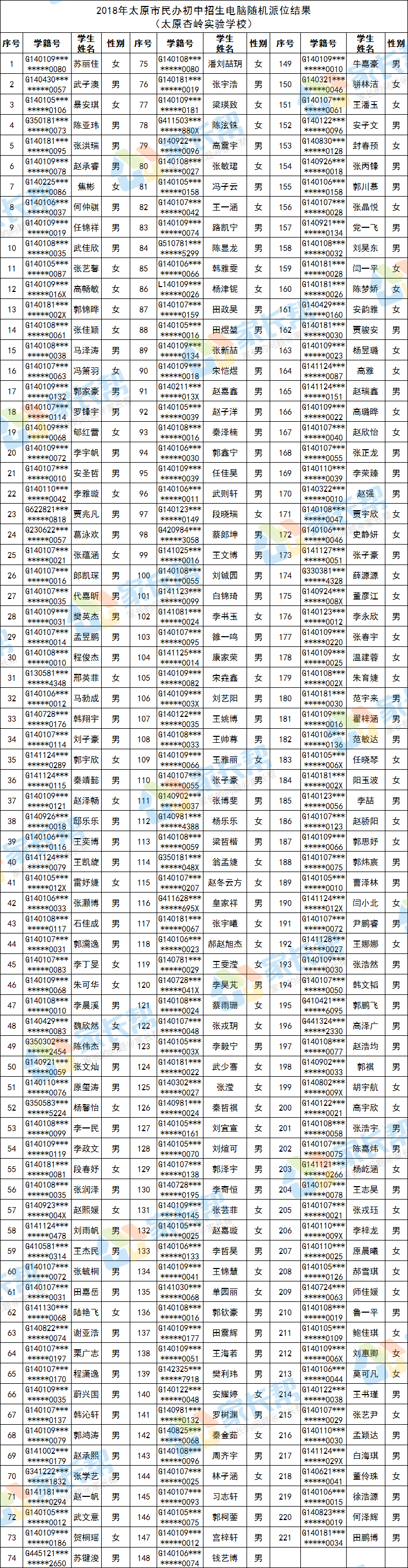 2018年太原市电脑随机派位结果:杏岭实验学校