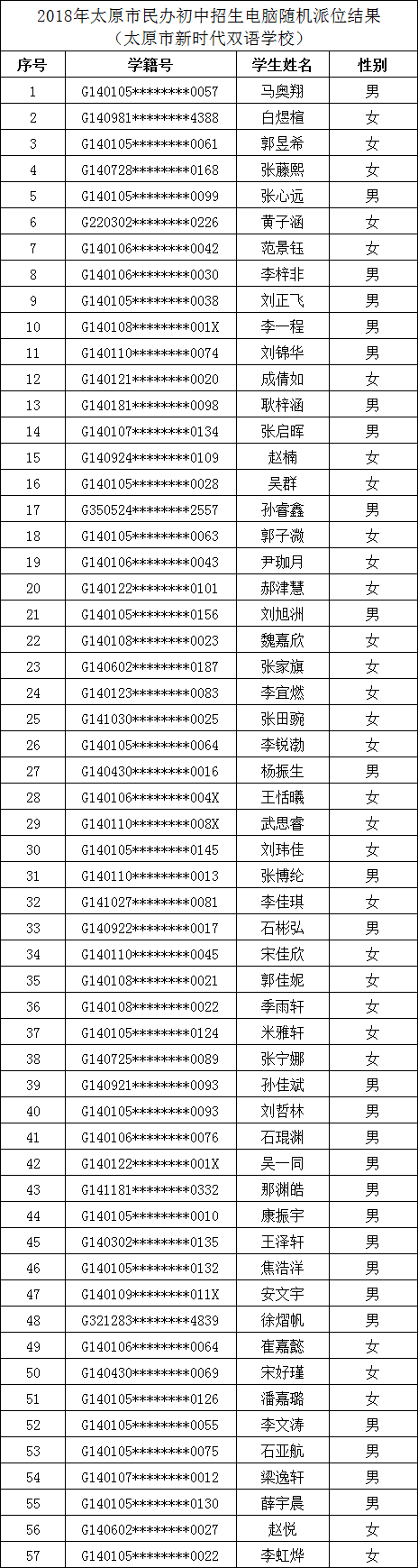 2018年太原市电脑随机派位结果:新时代双语