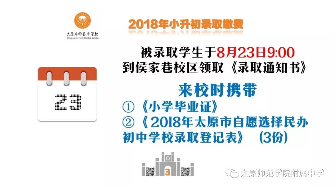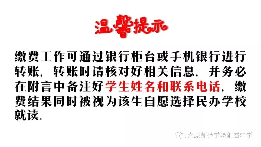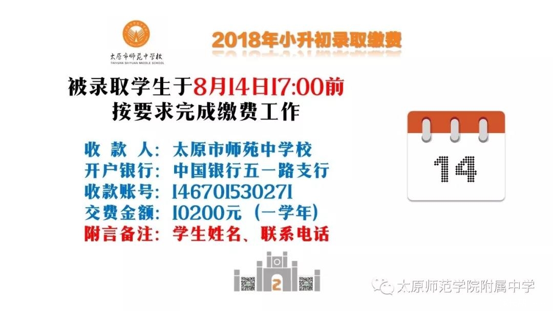 2018年太原初中学校录取缴费通知:师苑中学