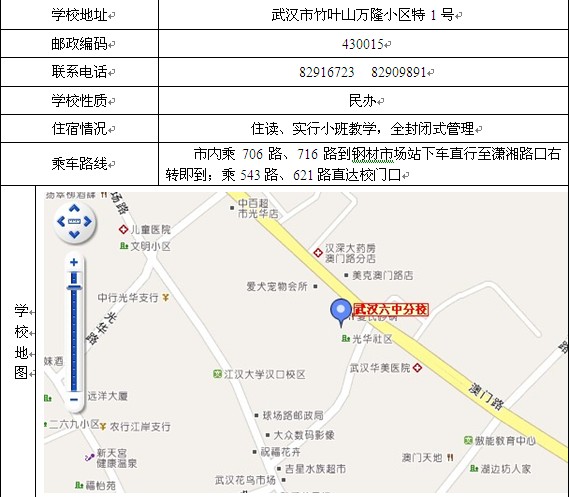 学校位于武汉市江岸区后湖发展新区,交通便捷,环境幽雅,是都市里难得的学习、成长、放飞梦想之佳境。