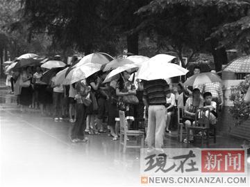 虽然天降大雨,在二中广雅中学,报名择校的长队没有任何松动迹象