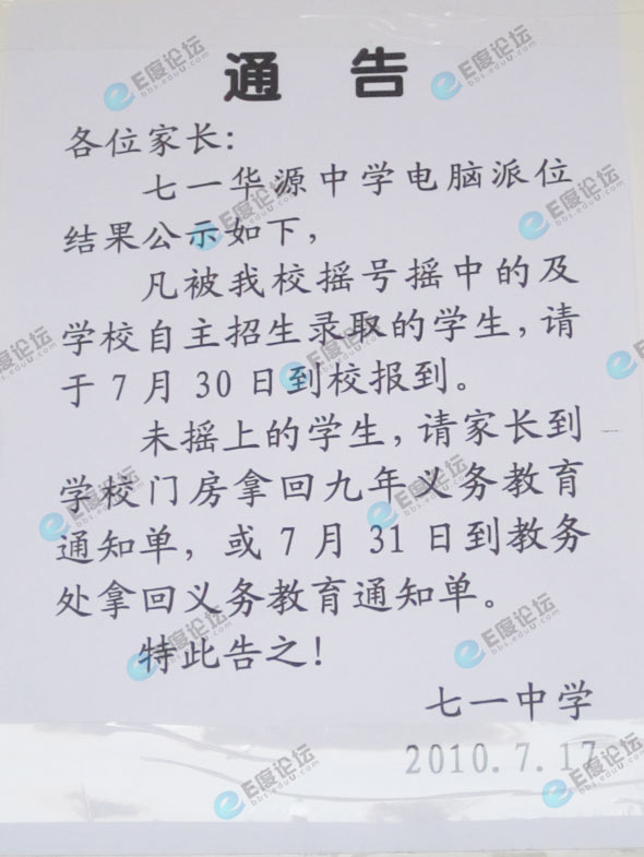 今年武汉市小升初“电脑派位”已于7月15日结束,录取名单的公布时间各区安排的都有所不同,其中一初慧泉中学,武珞路奥山中学等学校选在了7月16日公布(当日奥数网已公布);二中广雅中学,七一华源中学等学校选在了今日公布(7月18日)。以下是七一华源中学的择校录取名单。