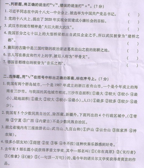 2012第八届读书知识竞赛四年级决赛试卷