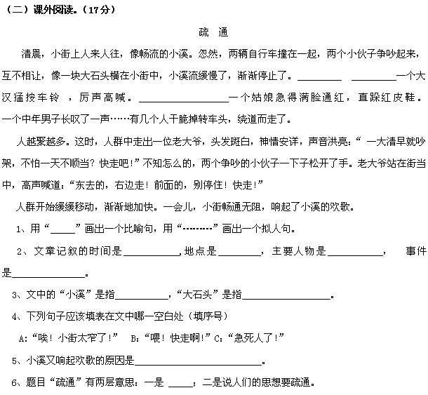2012人教版四年级上册语文期末试卷一(5)