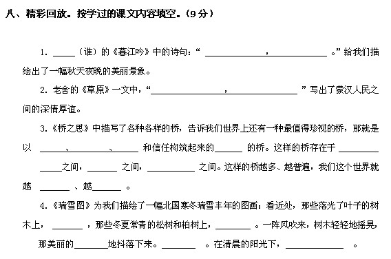2012北师大教版四年级上册语文期末试卷(5)