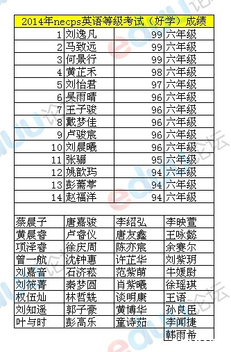 恭喜获奖的孩子!【查看原帖并参与讨论:2014年全国英语竞赛(necps)决赛入围名单】