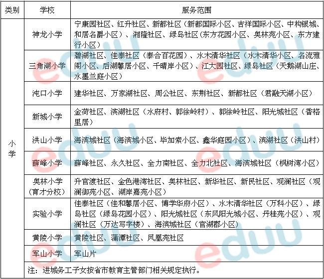 2014年武汉经济技术开发区小升初对口划片信息公布