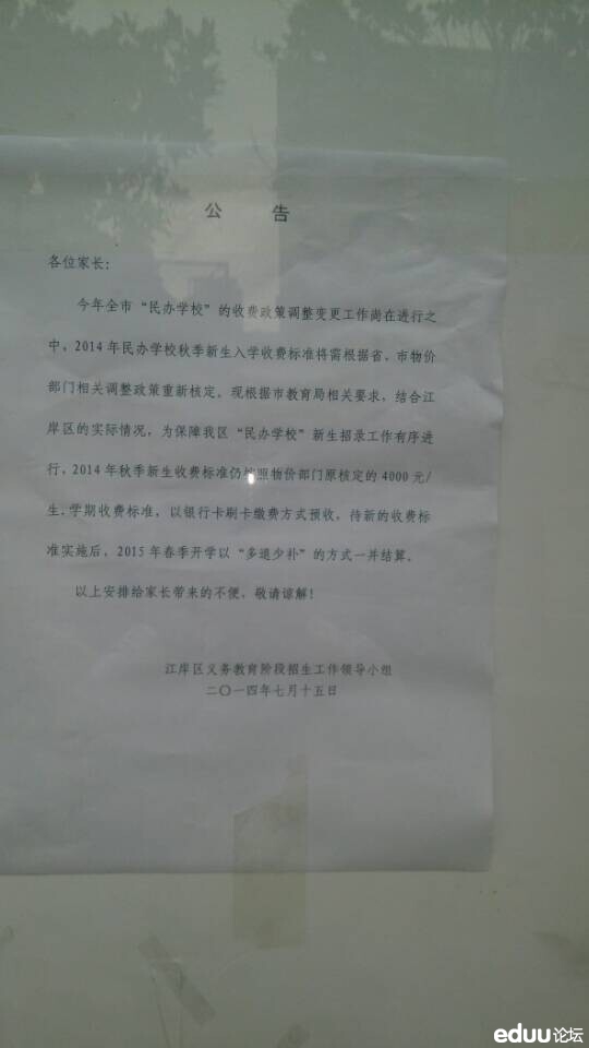 2014年武汉二中广雅缴费通知