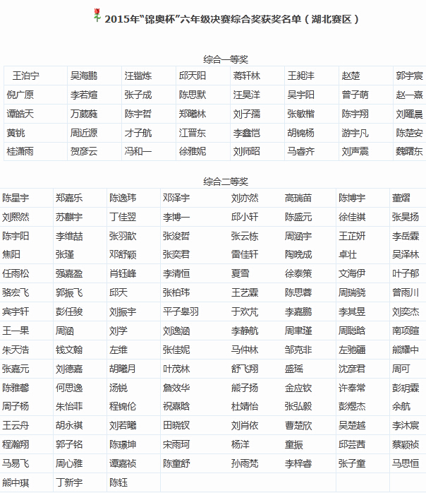 2015年武汉锦奥杯竞赛的获奖分数线已经公布,下面是2015年武汉锦奥杯的获奖名单及领奖流程,供2015年武汉锦奥杯参赛的考生参考。
