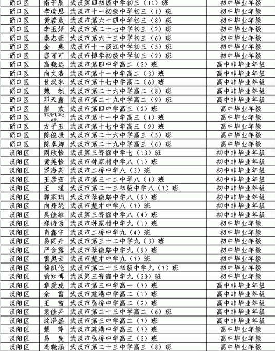2015年武汉市优秀学生干部公示名单出炉(3)