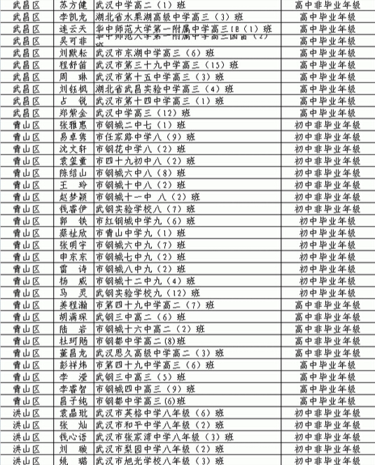 2015年武汉市优秀学生干部公示名单出炉(5)