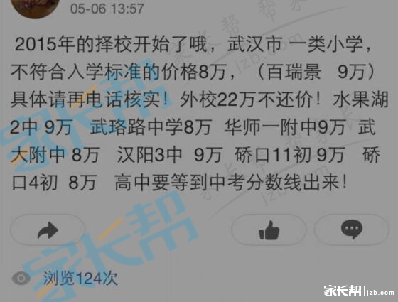 2015武汉小升初,一位小升初家长“加油萌妞”分享了一则武汉各大名初“明码实价”2015小升初招生的信息,让家长们不禁感叹“明目张胆”。
