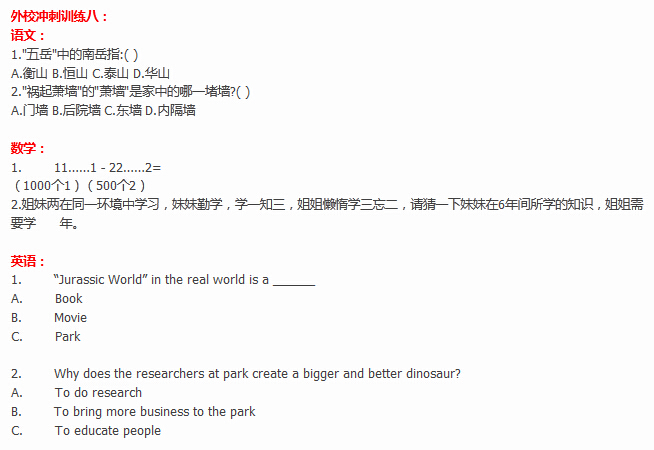 下面是武汉外国语(武汉外校)2015年小升初6月29日冲刺备考练习题和答案,供备考武汉外国语7月5日2015小升初面试的家长和考生参考。