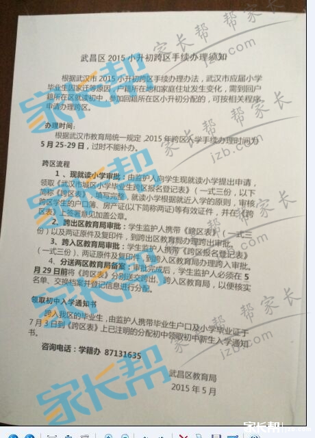 2015武昌区小升初跨区手续办理须知