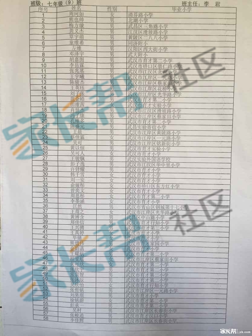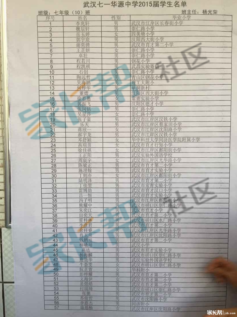 2015年武汉七一华源中学新初一分班名单(5)