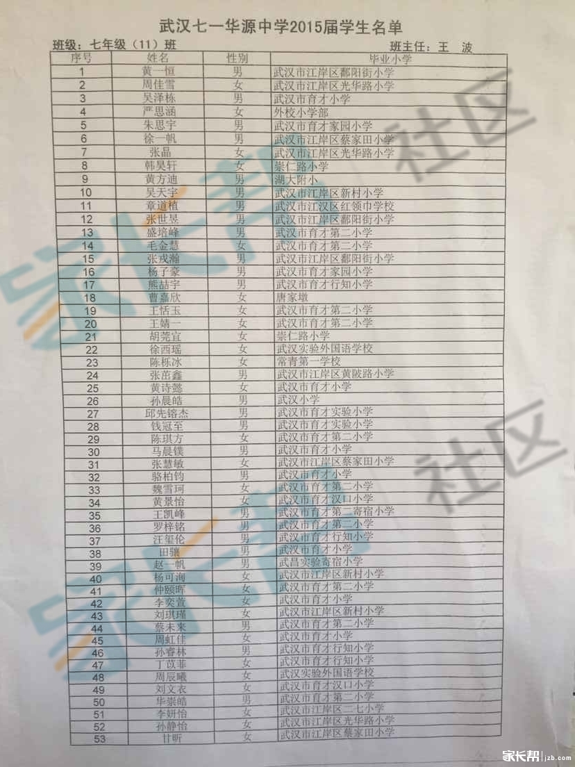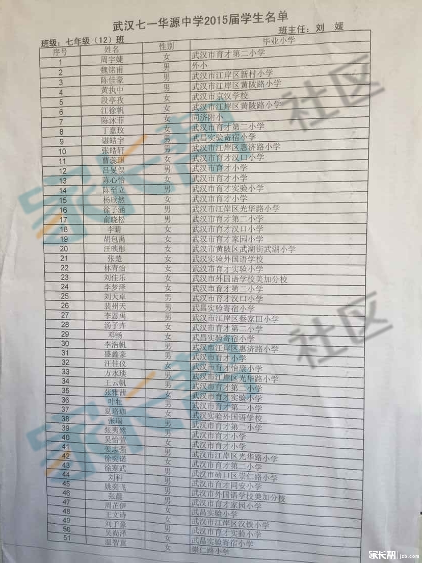 2015年武汉七一华源中学新初一分班名单(6) 武汉奥数网 2015-08-31 15:48:38 注:9、10火箭班 相关链接: 2015年武汉各初中新初一分班名单汇总 研究表明孩子数学差,真的与家长有关 首页 上一页 下一页 尾页