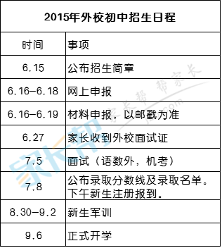 外校初中每年的招生节奏都差不多,大家可以参照2015年的时间,来估算本届的安排。仅供参考哦。