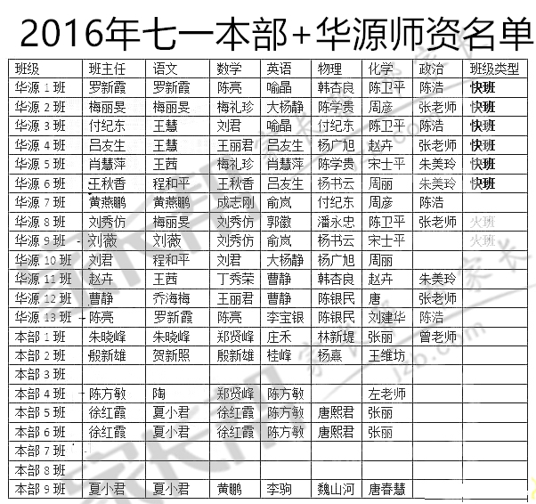 2016武汉七一本部+华源师资名单 奥数网 2016-02-24 13:15:11 分享2016武汉七一本部+华源师资名单,大家择校可以参考下。 相关推荐: 2016小升初择校面面观之武汉七一华源学校 2016武汉七一华源小升初入学攻略及优劣势
