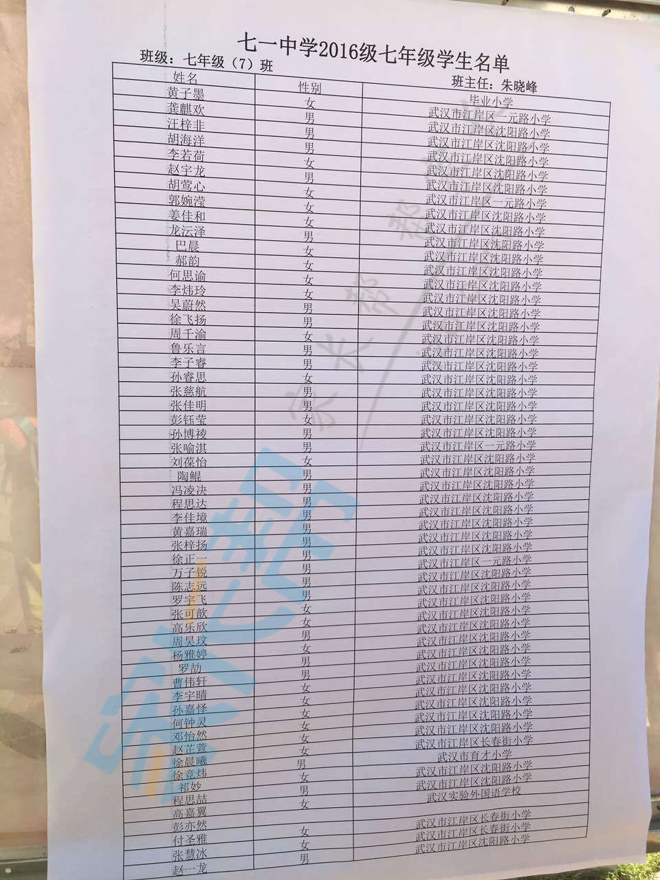 2016武汉七一中学本部新初一分班名单(7)