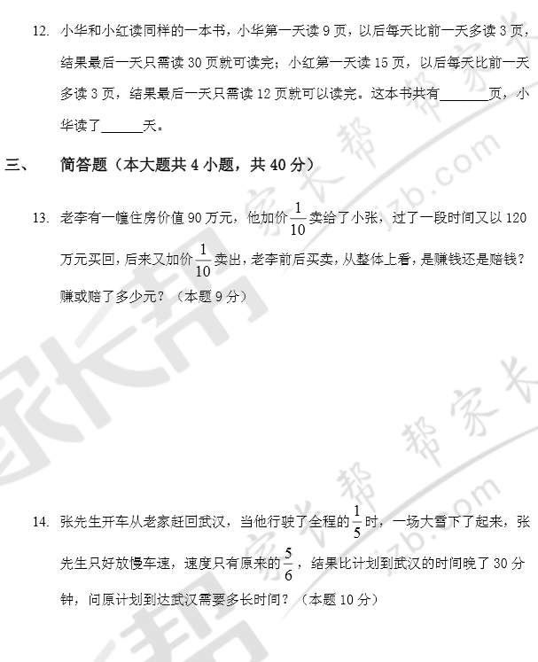 2017年武汉“锦奥杯”6年级数学模拟试卷(3)