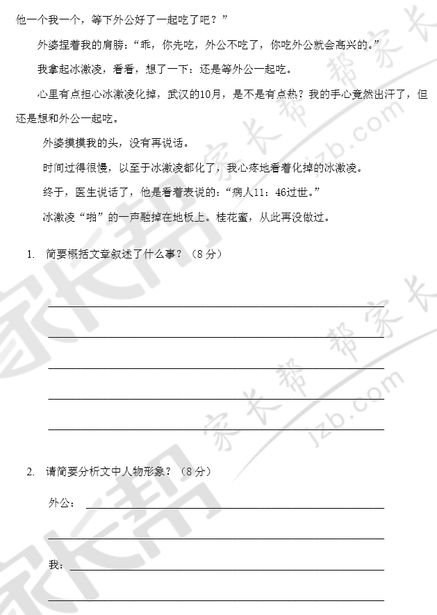 2017年武汉“锦奥杯”6年级语文模拟试卷(6)