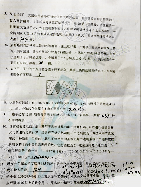 2017年武汉锦奥杯初赛六年级数学真题(2)
