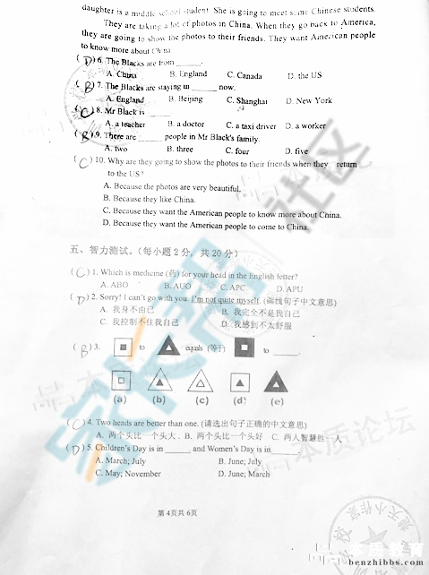 2017年武汉锦奥杯初赛六年级英语真题(4)