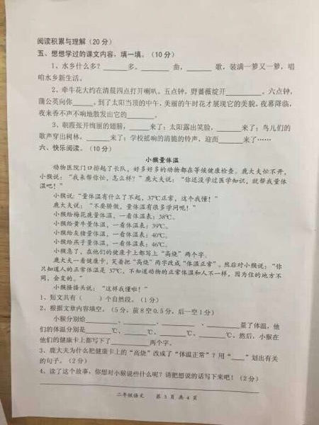 2016-2017学年上学期武汉东新区二年级语文期末试卷(3)
