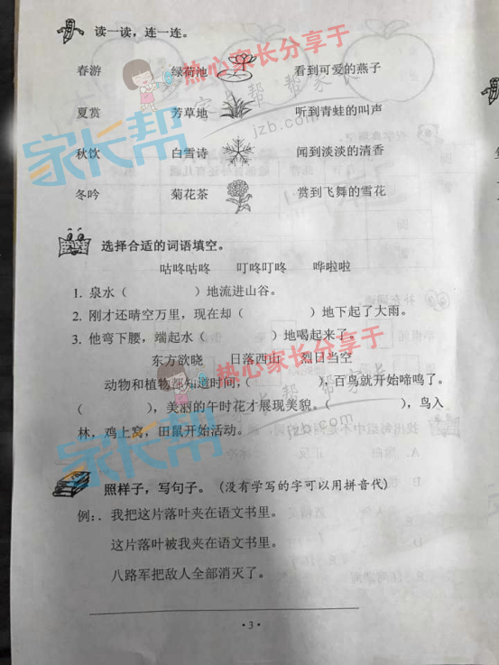 2016-2017学年上学期武汉汉阳区二年级语文期末试卷(3)