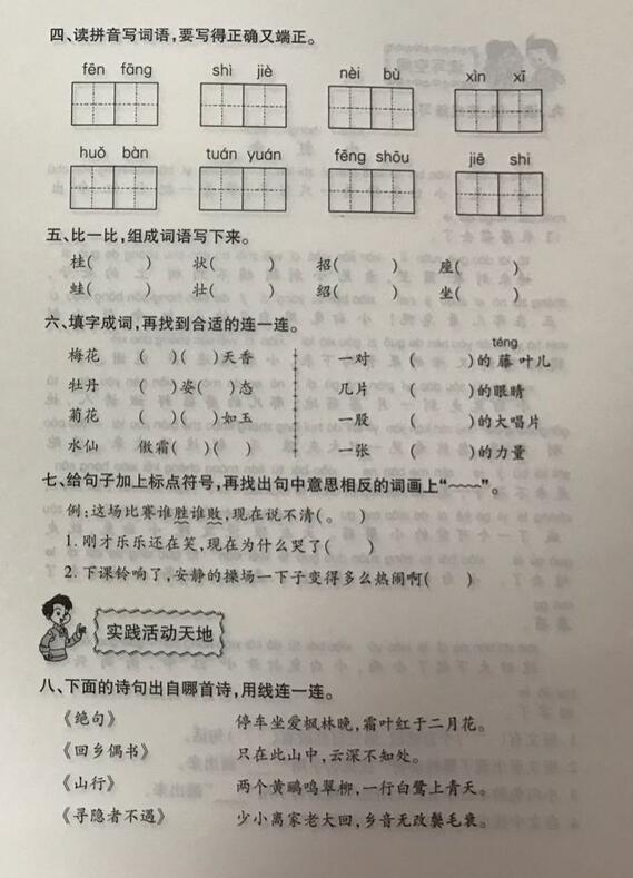 2016-2017学年上学期武汉江汉区二年级语文期末试卷(2)