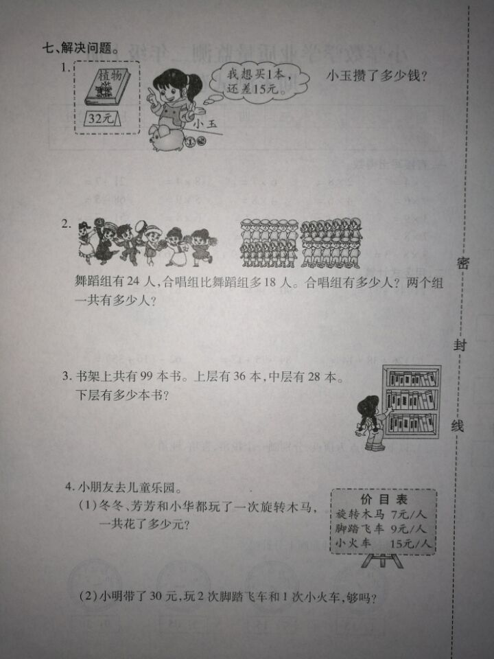 2016-2017学年上学期武汉江汉区二年级数学期末试卷(2)