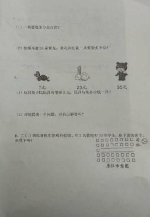 2016-2017学年上学期武汉硚口区二年级数学期末试卷(4)