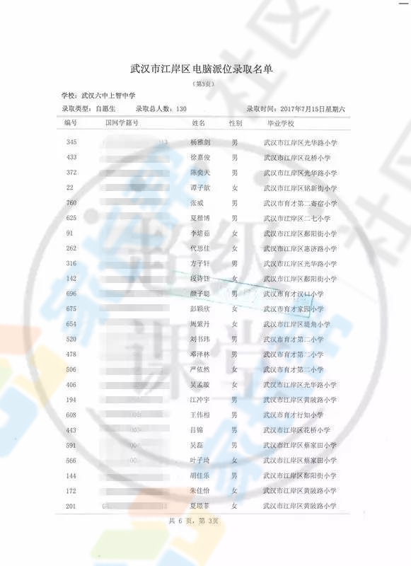 2017年武汉六中上智中学小升初摇号录取名单(3)