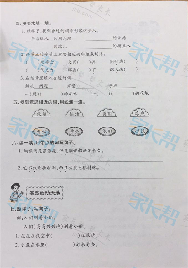 2016-2017武汉江汉区二年级下学期语文期末试卷(2)