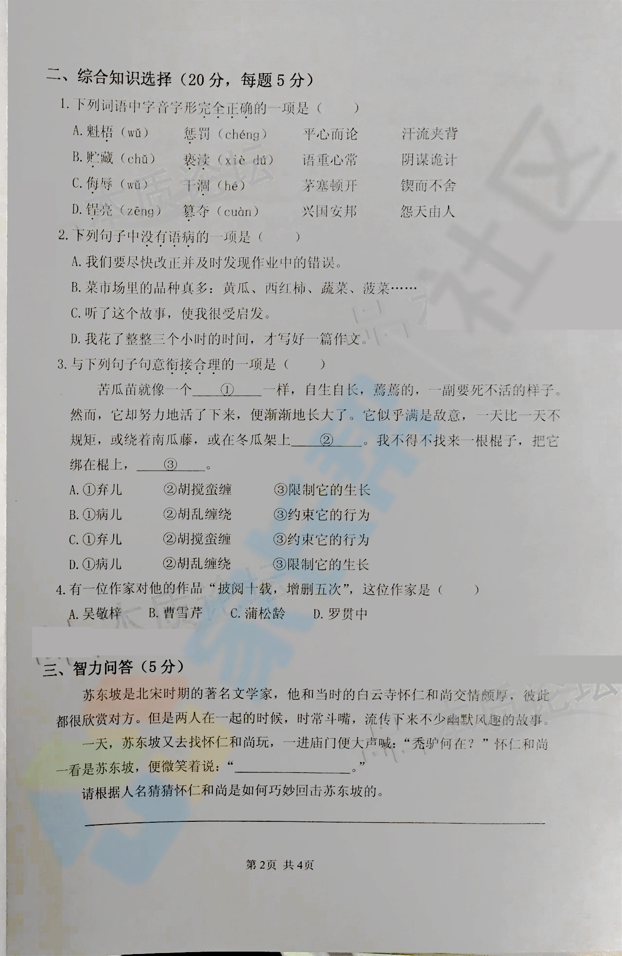 2018年武汉锦奥杯五年级语文初赛试卷(2)
