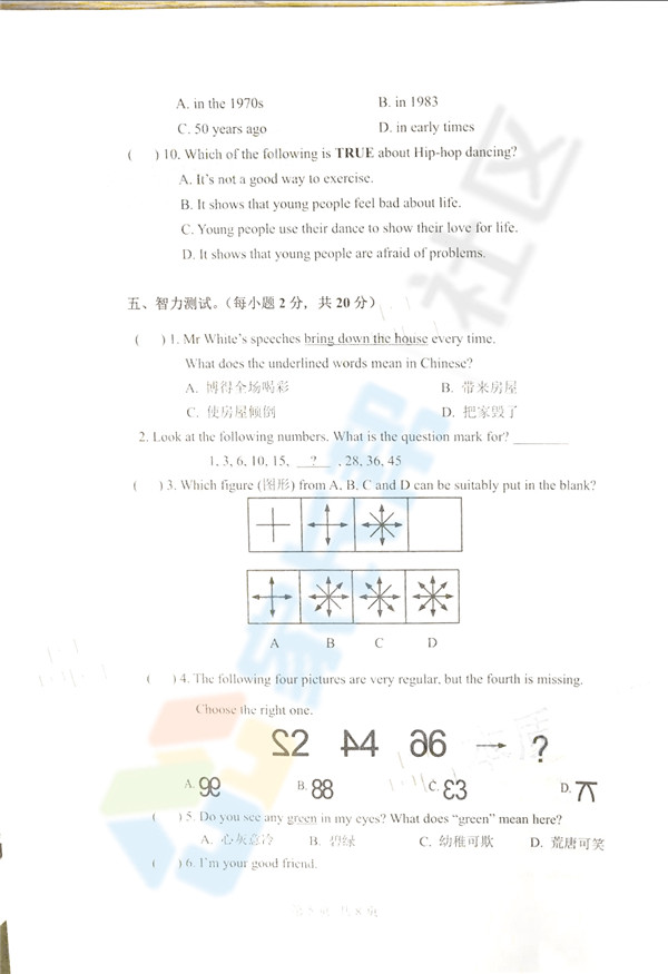 2018年武汉锦奥杯六年级英语初赛试卷(5)