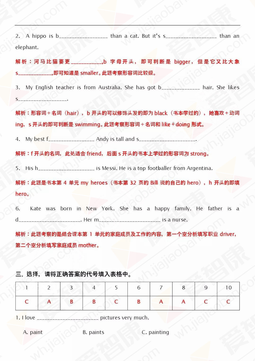 2018年武汉汉阳区双基英语试卷答案(7)