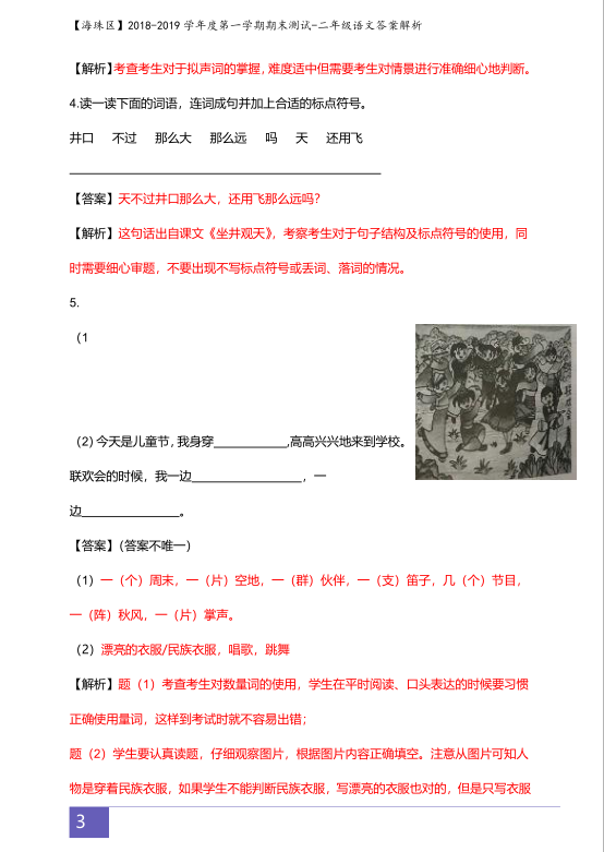 2019年武汉市小学二年级语文期末模拟卷一(图片版)(3)