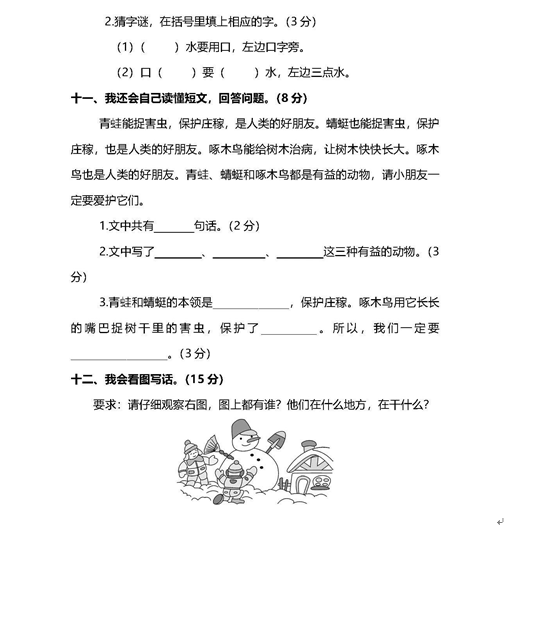 2019年武汉市小学二年级语文期末模拟卷五(图片版)(4)