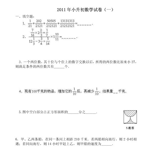 2011小升初数学试卷(一)