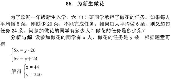 分析与解 设年龄为中间数的一个少年在1994年是x岁,则其余四人的年龄分别为x-2岁、x-1岁、x+1岁、x+2岁。