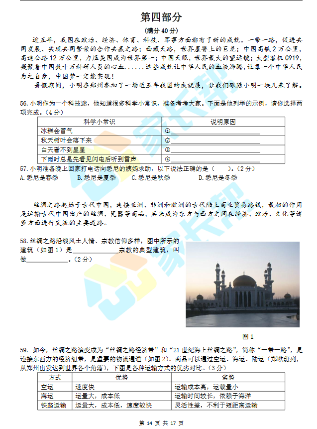 2017年郑州豫才过程性评价六年级综合真题